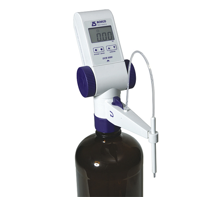 Características: - Se pueden utilizar para agentes de titulación hasta una concentración de 2 mol / l - Durante el proceso, el relleno es automático, eliminando la pérdida de tiempo de rellenado. - Pulso continuo de llenado hasta 5 ml por segundo - Los volúmenes dispensados se muestran en la pantalla y pueden ir de 10 ml a 999.9 ml, con una velocidad de 2,5 ml/vuelta o 5,0 ml/vuelta (según el modelo de bureta). - No tiene partes de vidrio que puedan romperse - La conexión directa a la botella evita el derrame de químicos peligrosos. - La válvula de seguridad permite la recirculación en un sistema cerrado que evita el desperdicio de reactivos. - Ángulo de la pantalla ajustable para una mejor lectura para las diferentes alturas de los usuarios. - El tubo de succión puede ajustarse sin cortar para diferentes tamaños de botella. - Espectro de dosificación : de 10 ml a 999,99 ml - BaterÃía fácilmente reemplazable. - Una carga dura al menos 500 hours (dispensa 4500 l de reactivo). - La bureta puede rotarse 360° en la botella. - Cánula removible y ajustable: horizontal 142-220 mm, vertical 10-200 mm - Las partes electrónicas pueden removerse completamente y la bureta pasa a ser autoclavable - Indicador de batería baja. - Tubo opcional de secado protege a los reactivos de la humedad o CO2. - Fabricado bajo normas ISO 9001. - Los adaptadores estan disponibles para la mayoría de tamaño de botellas. - Garantía: 1 año