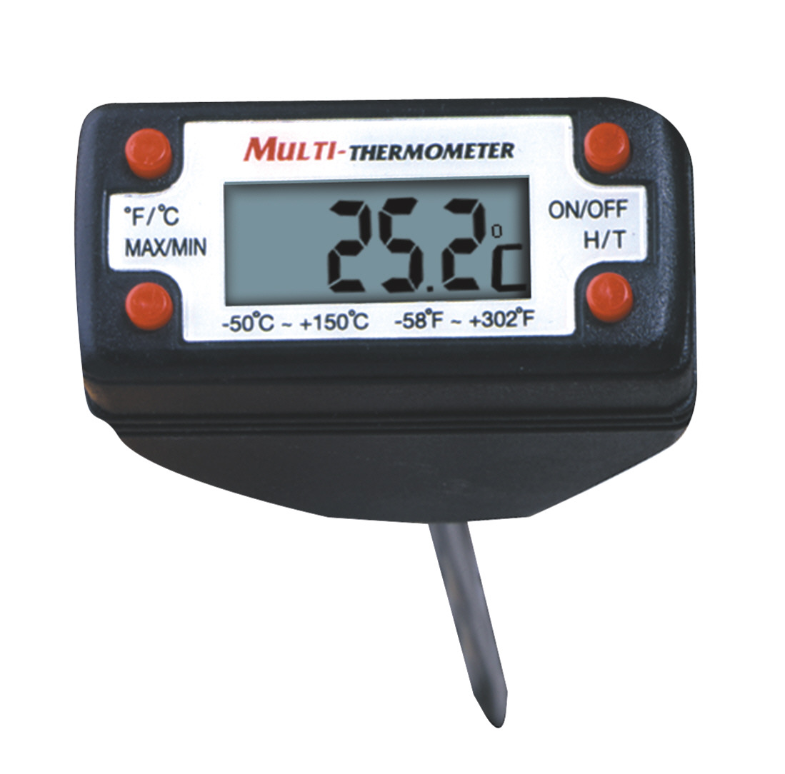 Resolución 0,1§C. Memoria de temperatura máxima y mínima. Función de apagado automático. Sonda medida de acero inoxidable, 120MM. Con forro protector de plástico. Ciclo de medida 1 O 10 Seg.